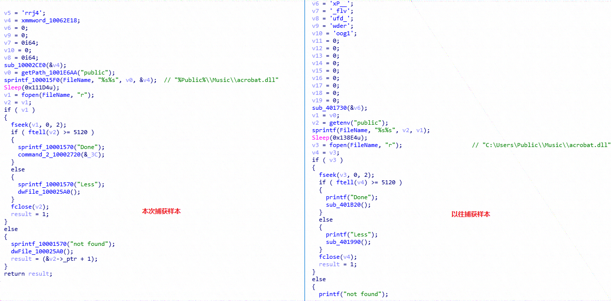 奇安信威胁情报中心对此次捕获样本攻击手法,代码逻辑层面分析,发现此次捕获的攻击样本与Donot组织常用攻击手法,恶意代码基本一致,下面主要和以往Donot组织样本进行对比分析: