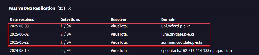 The C&C server domain june.drydate.p-e.kr is bound to IP 162.216.114.133, which has been bound to other similar domains in the recent past: summer.cooldate.p-e.kr and uni.oxford.p-e.kr, the latter of which may mimic the University of Oxford.