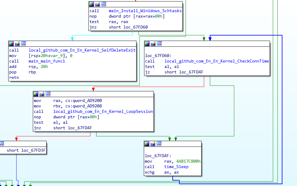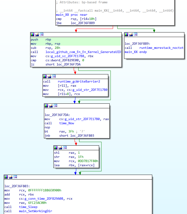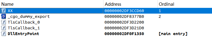 The malicious functionality of the DLL sample (MD5: b15cadf2a4e6670c075f80d618b26093) is accessed through the export function XX, which ultimately calls the Go-written function main_XX.