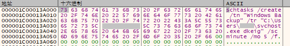 With the parameter "dkgei", the sample copies itself to the file "svchost.exe" in the current user's directory (i.e., "C:\\\ Users\\\ [username]\\\ svchost.exe"), and then creates a scheduled task named "Windows Backup", which is started with the parameter "dkeig". If the scheduled task is created successfully, perform a self-deletion, otherwise try to communicate with the C&C server.