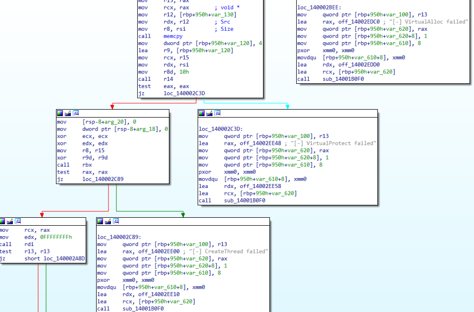 The core function is to decrypt a built-in shellcode and call CreateThread to execute it.