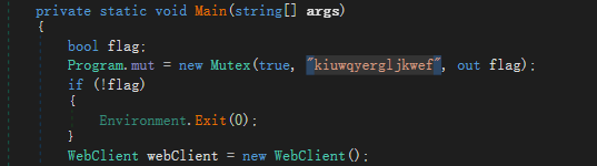 First a mutex named "kiuwqyergljkwef" is created.