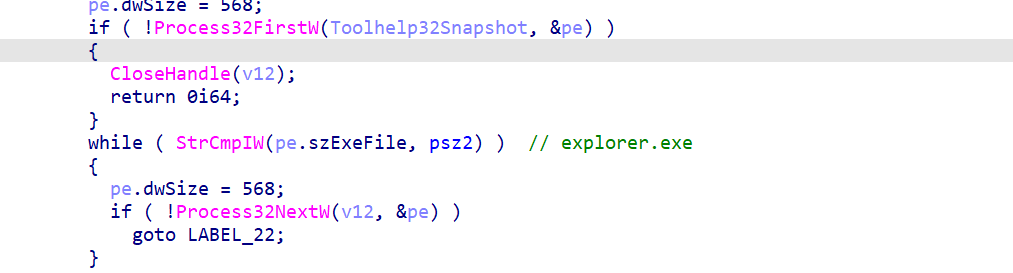 之后会寻找进程 explorer.exe 用于提权和进程注入。