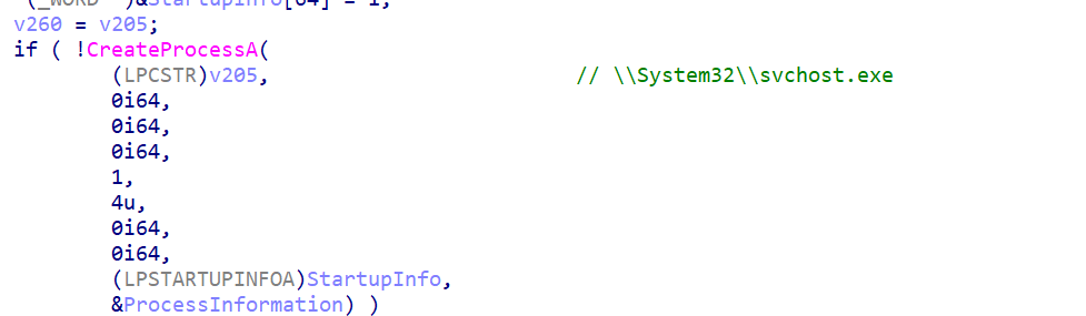 创建进程 svchost.exe,并将 shellcode 注入到进程 svchost.exe 中。
