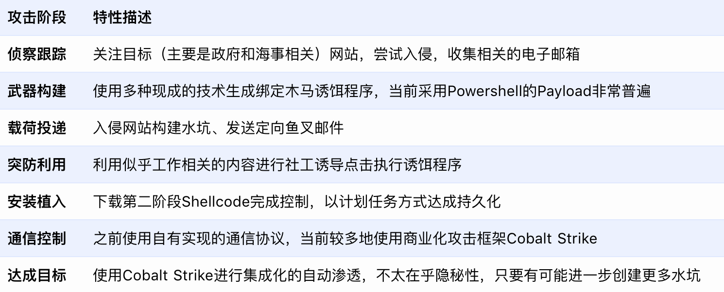 攻击所使用的木马后门工具更复杂对抗更强。奇安信威胁情报中心分析了若干个除Cobalt Strike组件以外的自研木马代码,发现其更加普遍地采用了白程序利用结合Shellcode的方式来绕过防病毒系统的检测,为了对抗人工分析恶意代码做了深度混淆。这个变化体现了团伙在技术能力上有了进一步地提升,使我们的分析工作需要更先进的工具,投入更多人力。