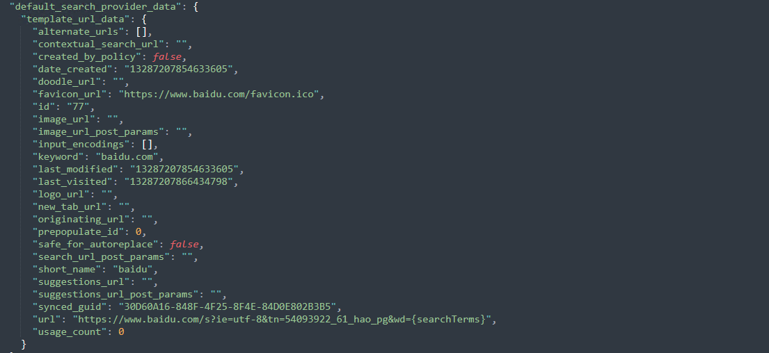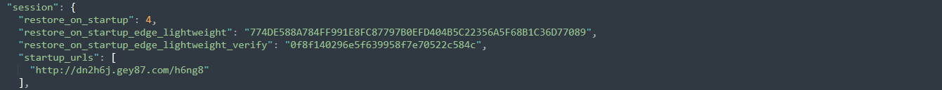 It parses the received configuration file and writes it into the browser's user profile. For the Edge browser, it modifies the Secure Preferences file. The modified Secure Preferences file shows the hijacked links: