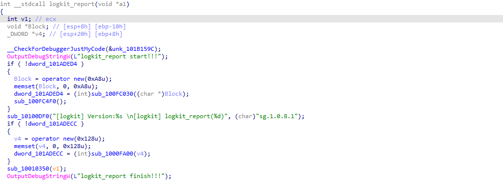 The payload is logkit.dll, whose malicious behavior resides in the export function logkit_report. Its function is to deploy the final Mltab malicious browser plugin.