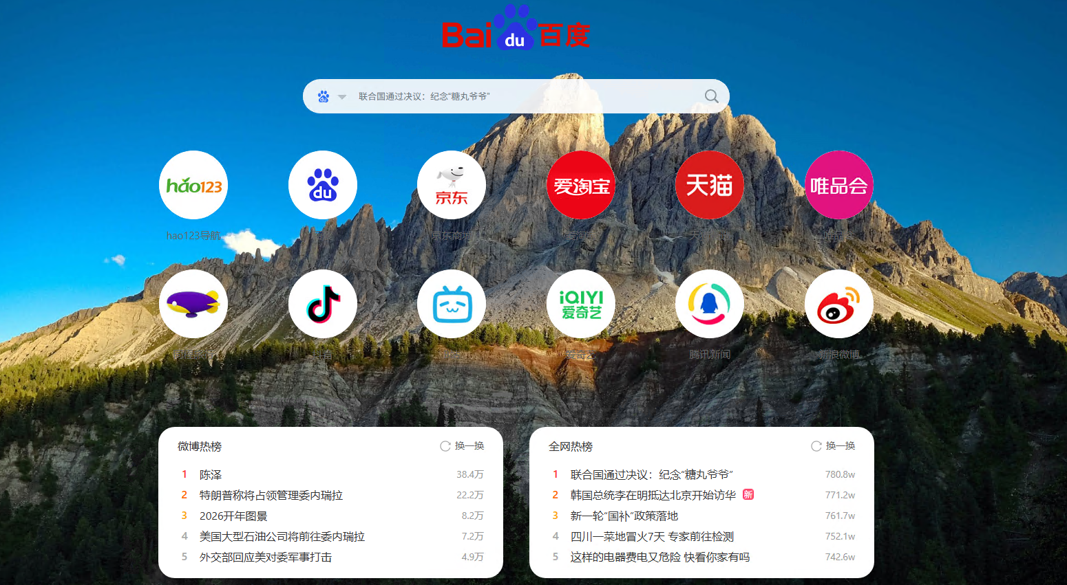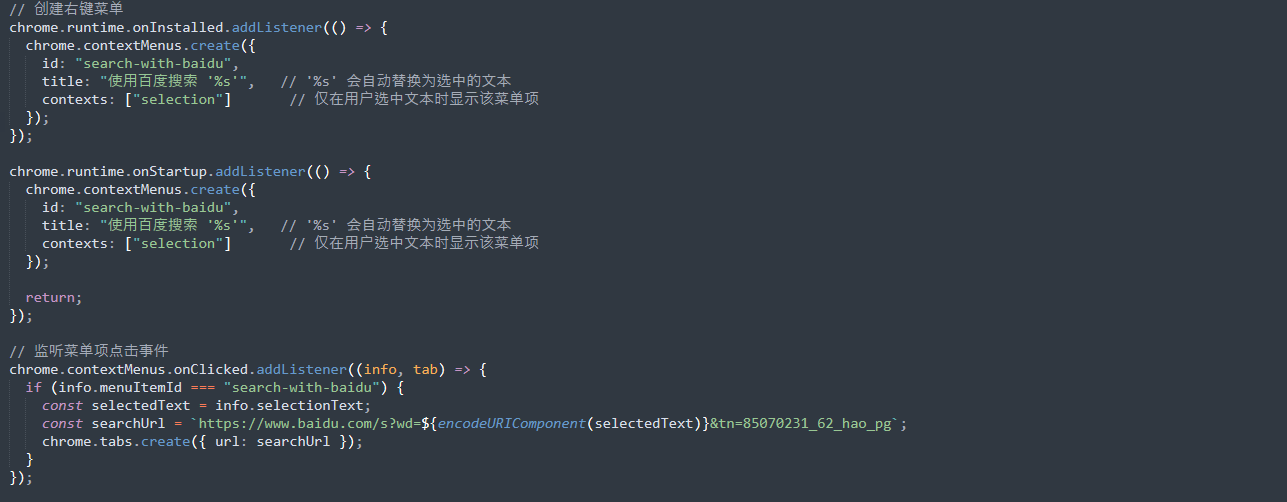 Creates a right-click context menu item "Search with Baidu," which actually visits hijacked promotional links: