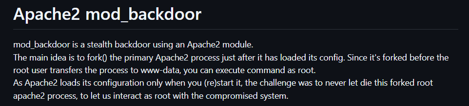 After analysis, it was found to be the open-source project apache2_BackdoorMod: