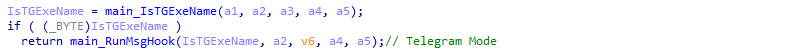 CodeRun first checks if the current module is Telegram.exe, if so, it executes Telegram plugin mode.