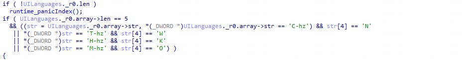 After the victim downloads and runs it, the malicious sample will first screen domestic users according to the language settings, and continue to execute when the settings are in Chinese, involving mainland China, Hong Kong, Macao and Taiwan.