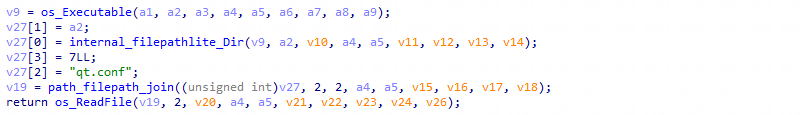The main function of gsgweTyv is to decrypt qt.conf and load it.
