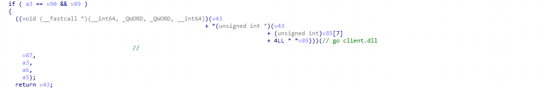 The decrypted payload is a dll file with its own loader. After gsgweTyv finishes loading, it jumps to the payload and finally loads the payload, client.dll, and executes the export function CodeRun.