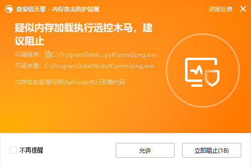 QiAnXin Tianqing's "Liuhe" engine can now block this trojan by default. We recommend government and enterprise clients deploy the "Liuhe" engine to defend against unknown threats.