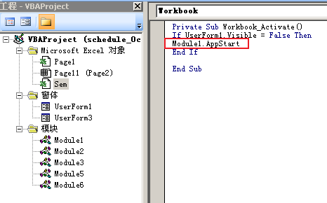 宏代码入口在Excel对象Sem中。