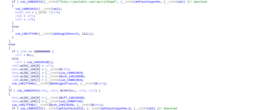 之后会从托管网站 pastebin.com 和 snippet.host 获取要执行的 payload 信息。