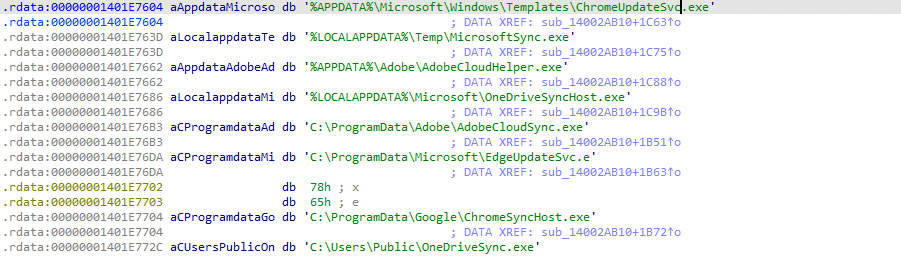 解压后的组件释放在 C:\ProgramData、C:\OneDriveTemp、C:\Users\Public、C:\Windows 等路径下。