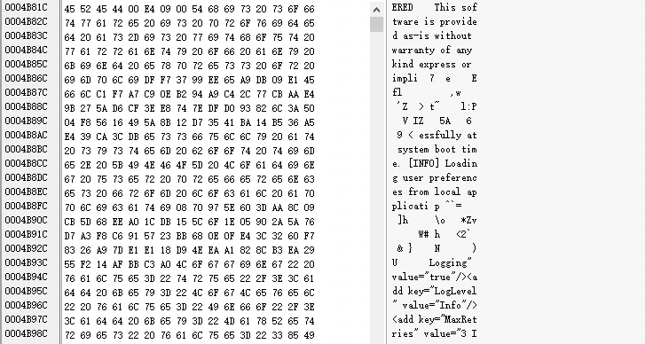 攻击者将加密的 payload 分段插入到一个软件免责声明中作为资源,加载时会分段提取 payload 片段并将其组合后解密