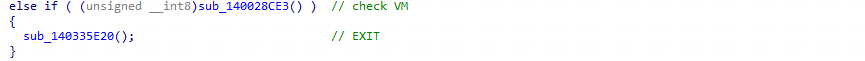 受害者运行后,样本会创建一个新线程执行其恶意行为,首先会监测当前环境是否在虚拟机中,检测到就退出。