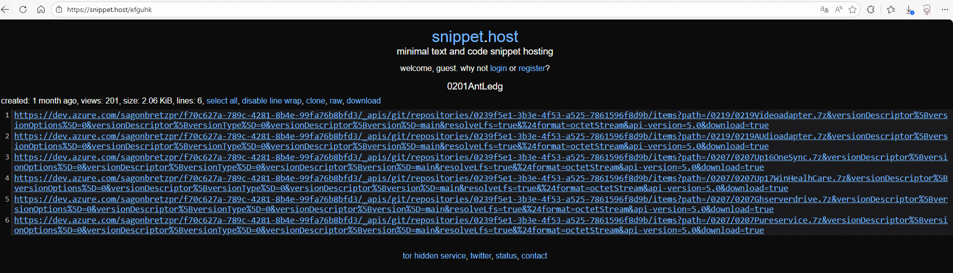 之后访问文本托管网站 snippet.host,攻击者设置了后续组件的下载链接。