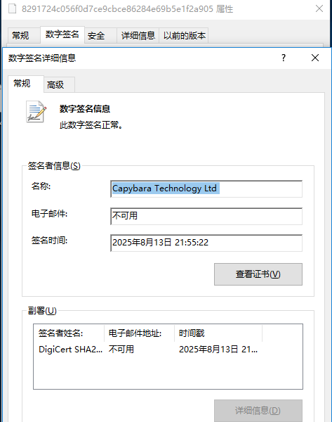 黑产和 APT 组织在木马上使用国内数字签名基本都是通过代签服务,据我们了解一次代签收费 2w-5w 不等,是比网络攻击利润率更高的黑色产业链,涉及的数字签名: